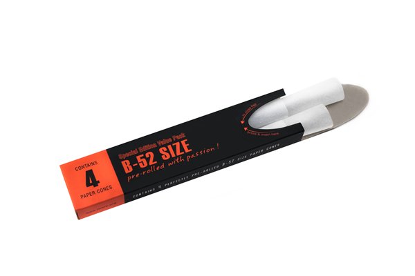 B-52 size 4 Pack This beasty pre-rolled delivers a real bomb effect on every puff. This model is becoming a great hit on the Danish market. This twelve B-52 size cones will blow you strait into the sky.